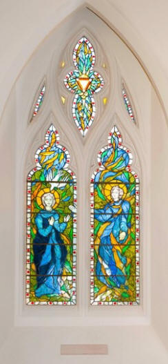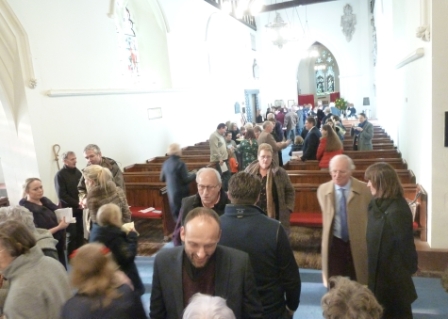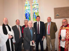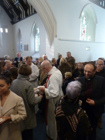 window in South Transept designed and painted by Patrick Reyntiens Dedication Ceremony 20th Jan 2017 with Rector Stephen Southgate and Father Anthony