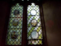 Internally the church has an unusual roof. The nave rafters are supported by ashlar pieces within the wall, and date from about the 14th century. Separating the nave and the chancel is a massive hammerbeam screen - this in place of the more usual chancel arch. The chancel roof has a red and gilt painted and carved ceilure, which is the same height as the roof of the nave. There is some interesting stained glass in the nave - on the south side, to the west of the door is a modern window commemorating Colonel Arthur Murray who fell in Palestine in 1917. In the north windows close to the transept there are some unusual Flemish glass inserts.