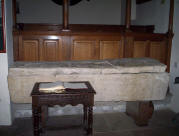 In front of the north aisle, a stone coffin discovered beneath the pulpit during the 1901 restoration and found to contain two skeletons the later 16th century one having a hole in the skull and thought to be that of a murder victim. The coffin is also thought to have been used as an ossuary for churchyard bones dating from a time when the churchyard was overcrowded.